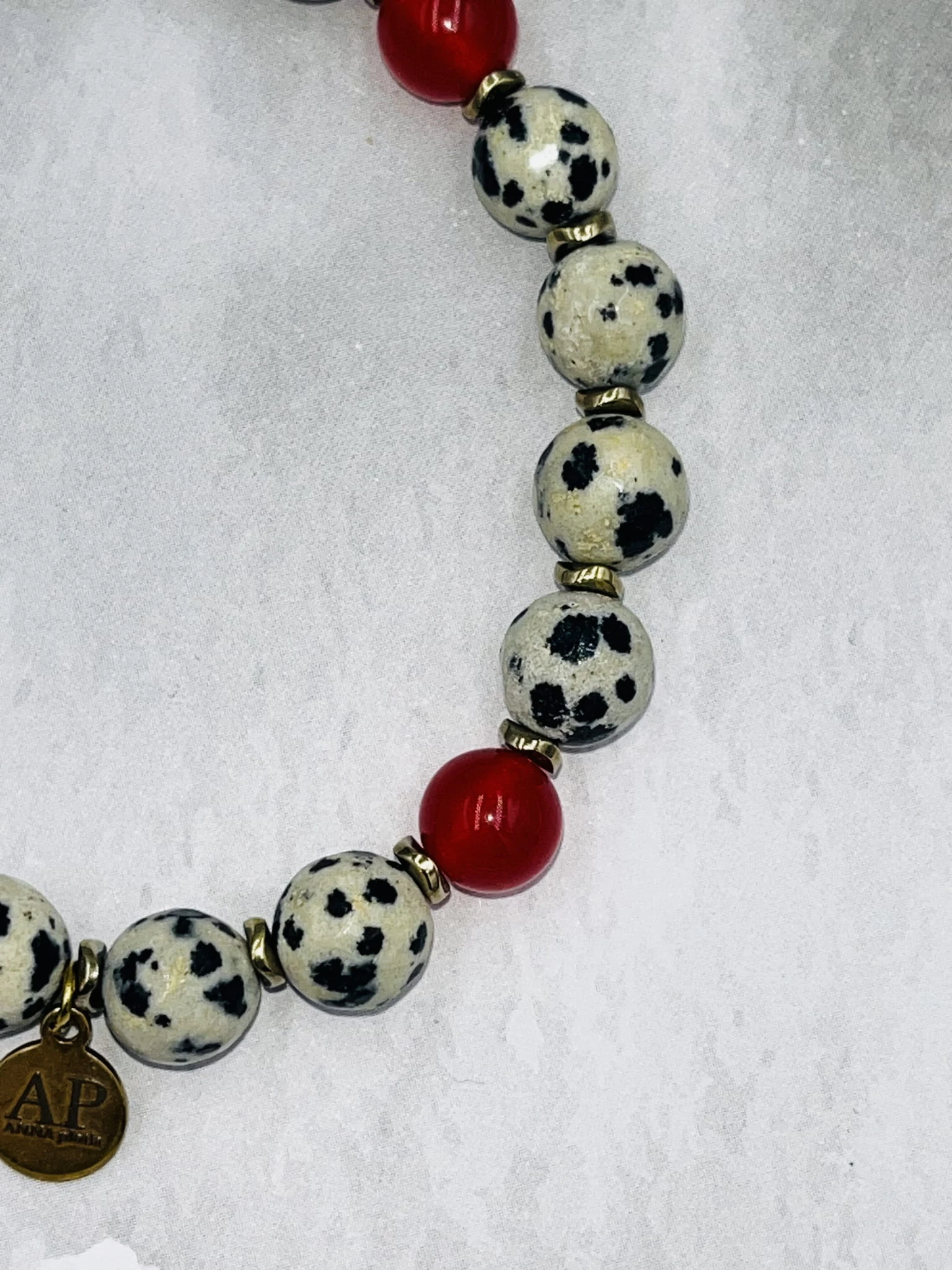 Bransoletka damska z jaspisu dalmatyńskiego, czerwonego agatu i hematytu