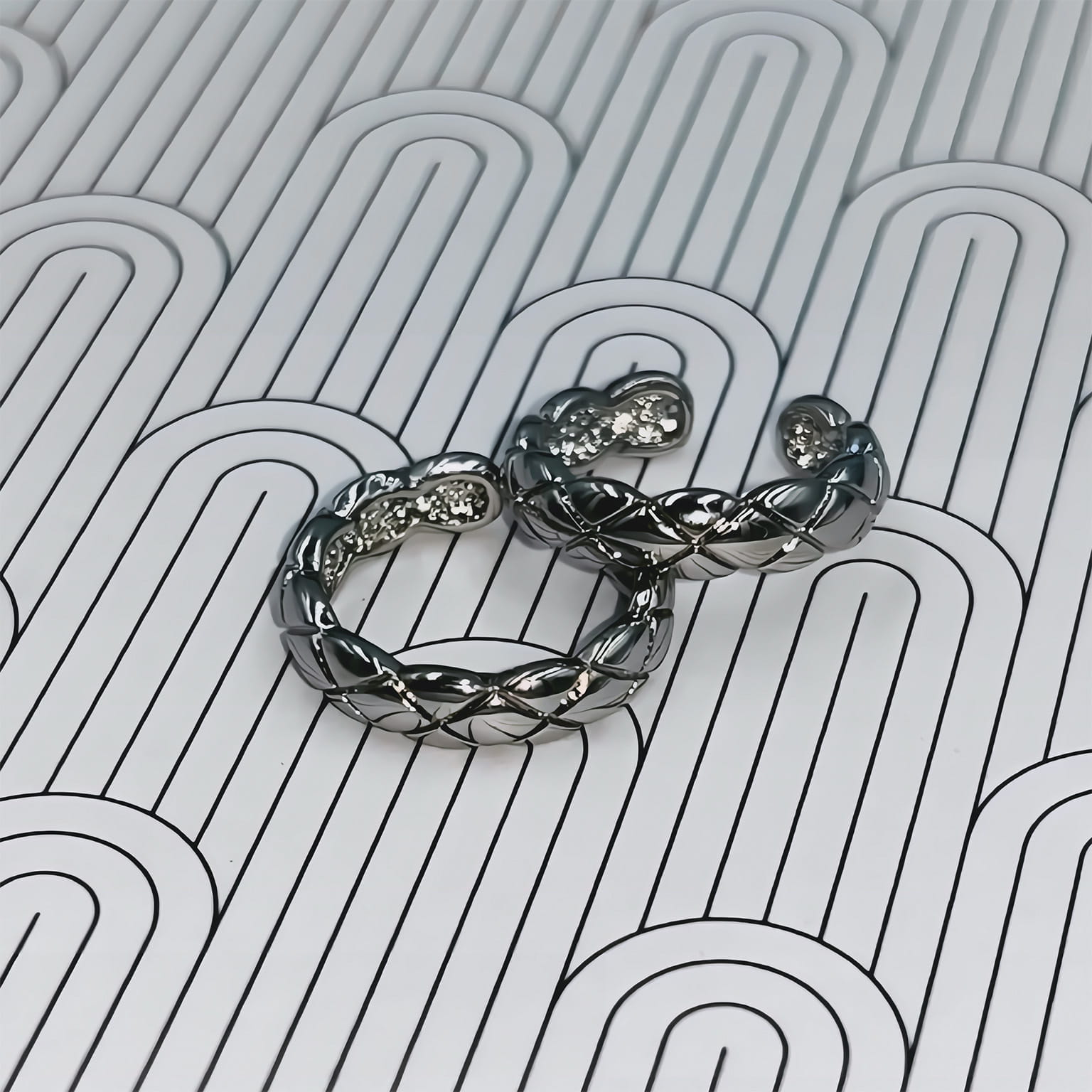 - Materiał: miedź rodowana w odcieniu srebrnym
