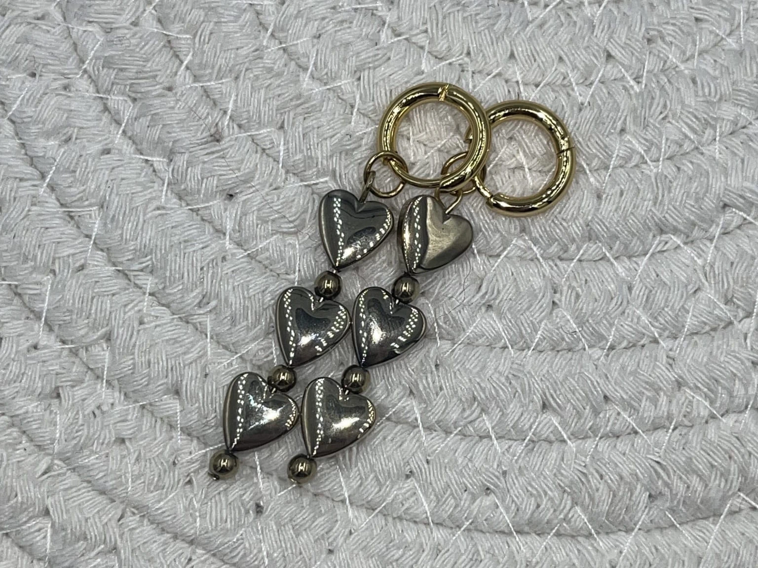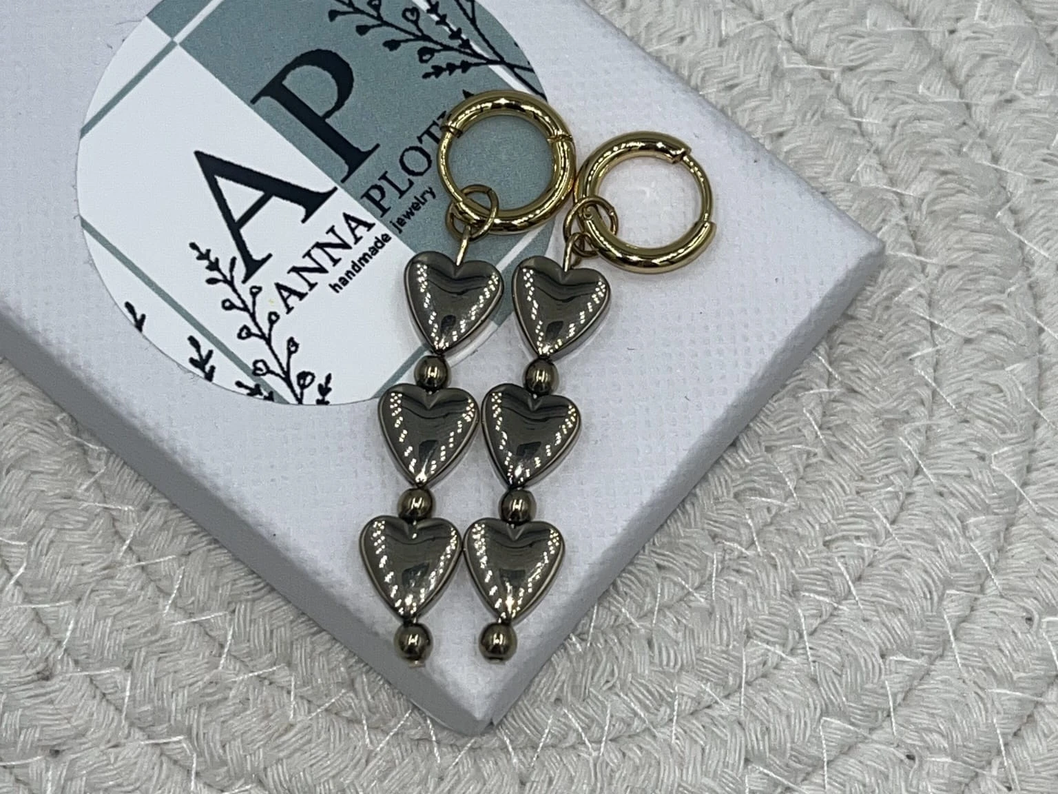Kolczyki wykonane na bazie ze stali chirurgicznej 316L o długości 1,2 cm łączą trwałość i właściwości antyalergiczne z delikatnym, dekoracyjnym motywem. Zawieszka w kształcie serca z hematytu w złotym odcieniu nadaje biżuterii eleganckiego, symbolicznego charakteru.