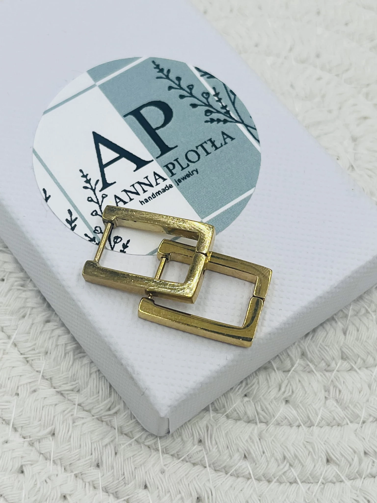 Kolczyki ze stali chirurgicznej 316L w złotym kolorze w kształcie prostokąta Subtelny, błyszczący akcent o lekkim, nowoczesnym charakterze. Antyalergiczne właściwości sprawiają, że są komfortowe w codziennym noszeniu.