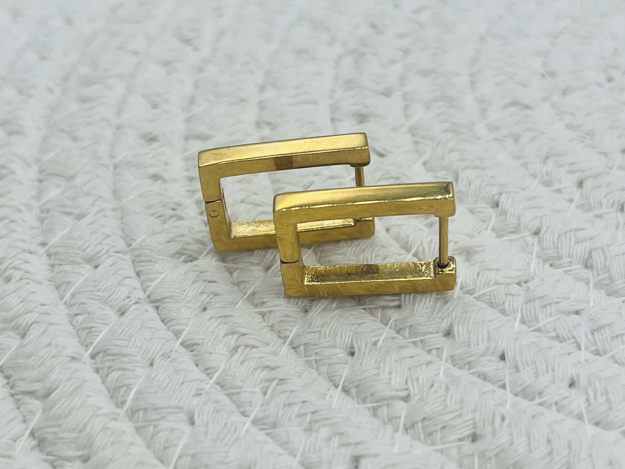 Kolczyki w kształcie prostokąta wykonane ze stali chirurgicznej 316L to elegancki i uniwersalny dodatek do każdej stylizacji. Złoty kolor nadaje im ciepłego, subtelnie luksusowego charakteru, a minimalistyczna forma sprawia, że pasują zarówno do codziennych, jak i bardziej eleganckich zestawień.