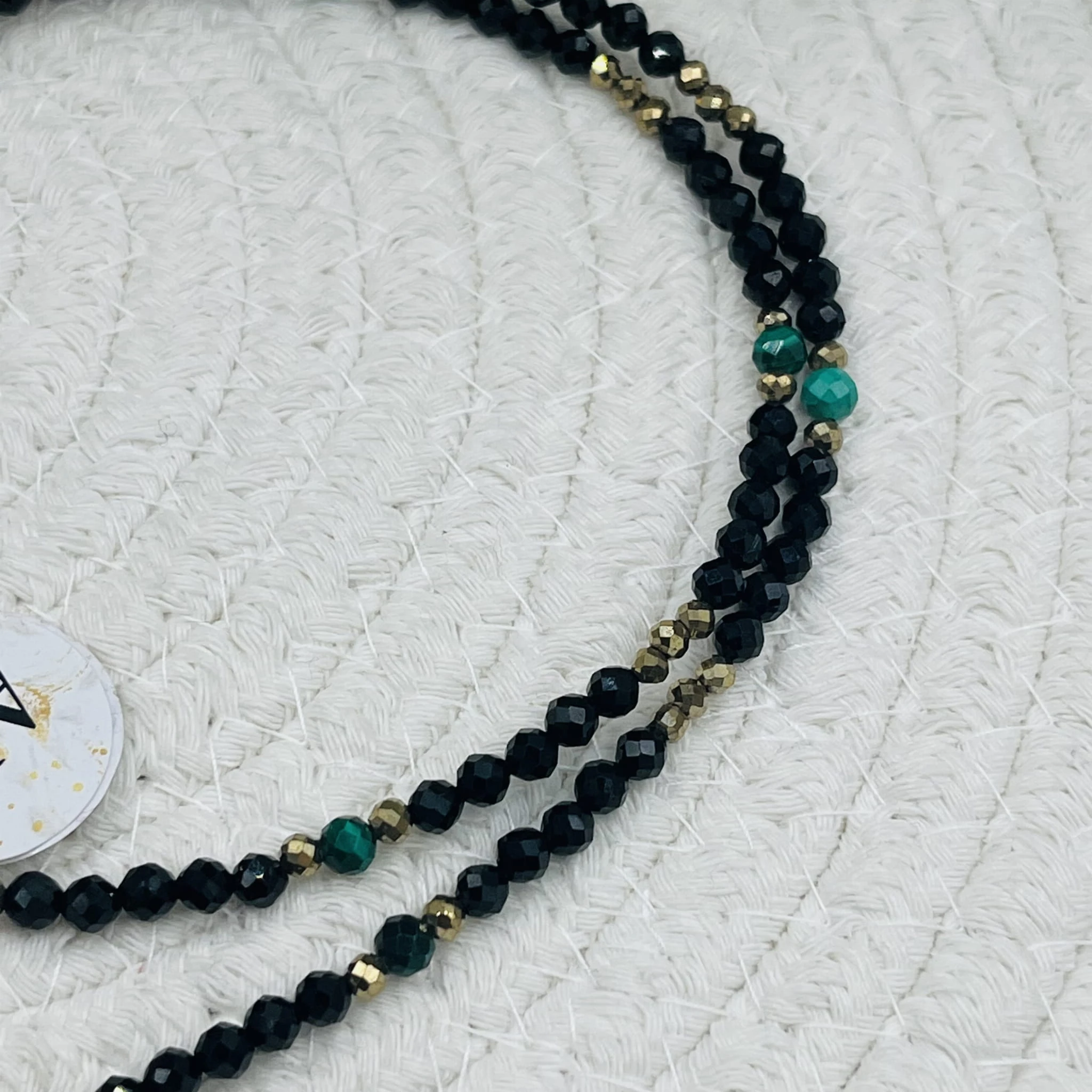 Naszyjnik wykonany z fasetowanego czarnego turmalinu o średnicy 4 mm wyróżnia się głęboką, intensywną barwą oraz subtelnym połyskiem. Szlifowane kamienie odbijają światło, nadając biżuterii elegancji i wyrazistości.