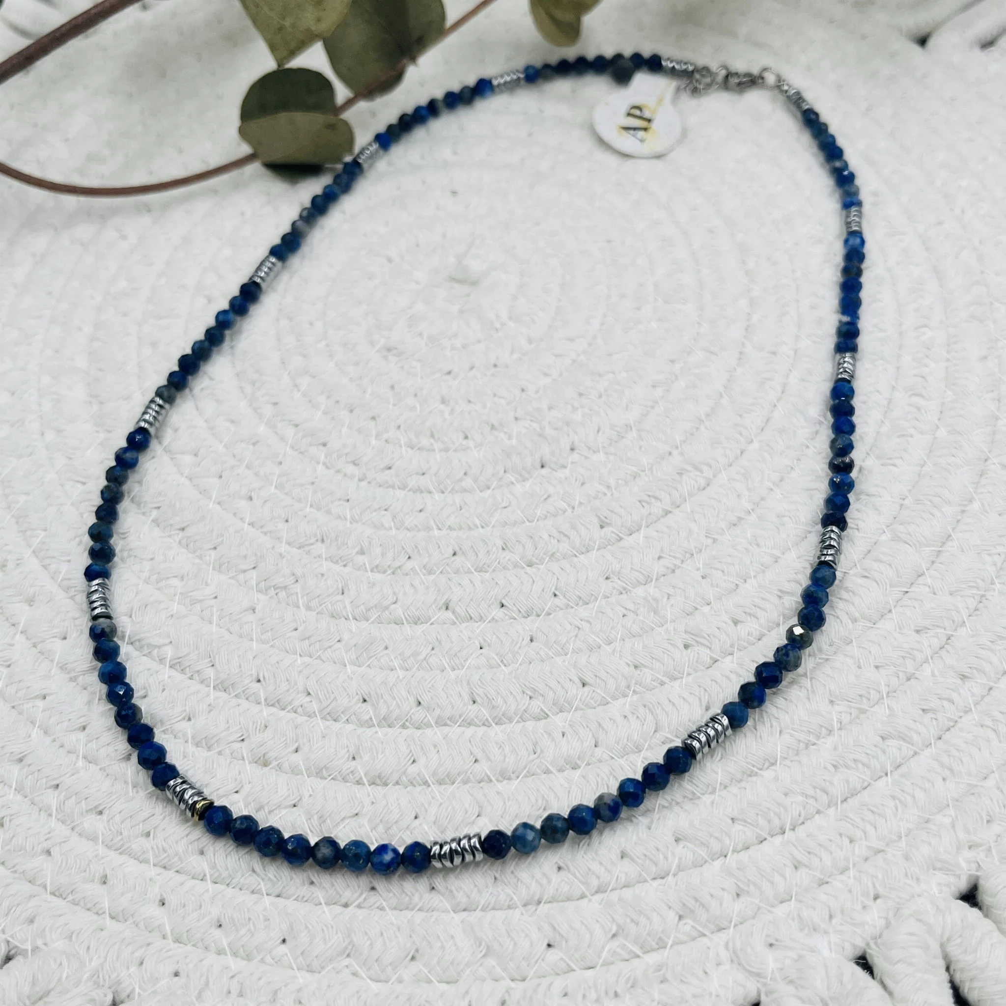 Naszyjnik wykonany z fasetowanego lapis lazuli o średnicy 4 mm wyróżnia się głęboką, granatową barwą oraz subtelnym połyskiem. Szlifowane kamienie odbijają światło, nadając biżuterii elegancji i wyrafinowanego charakteru.