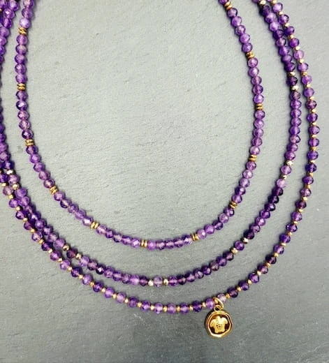 Naszyjnik z fasetowanego ametystu i złotego hematytu