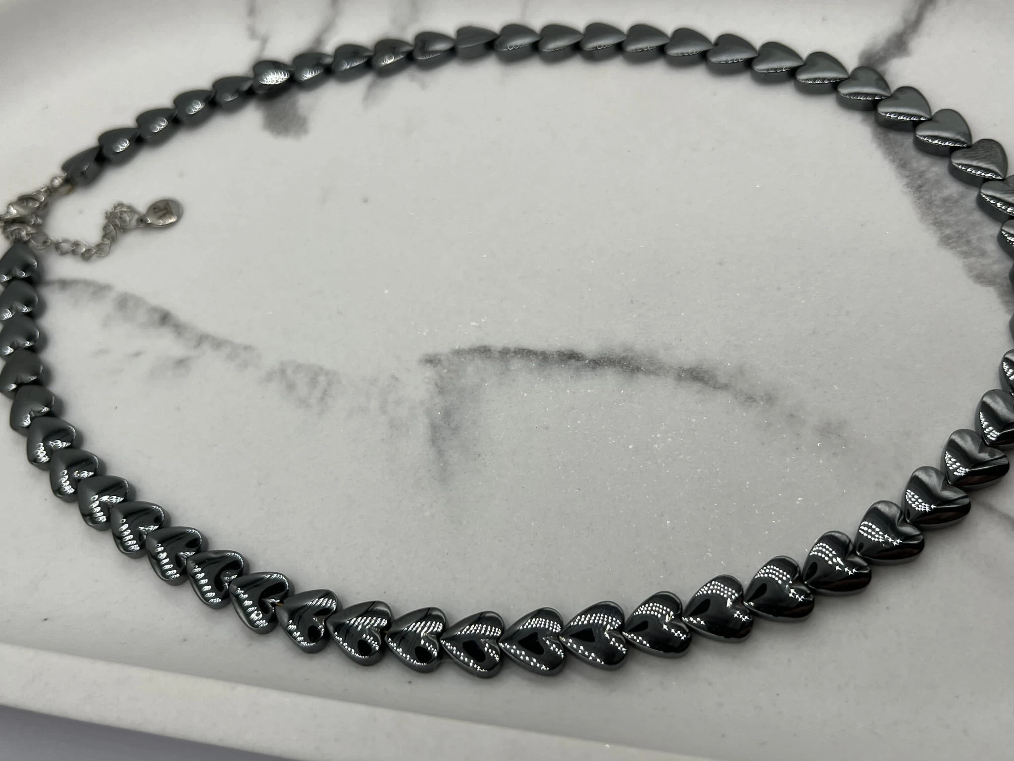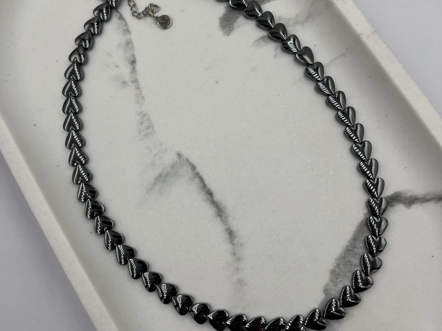 Naszyjnik z hematytu grafitowego w kształcie serc