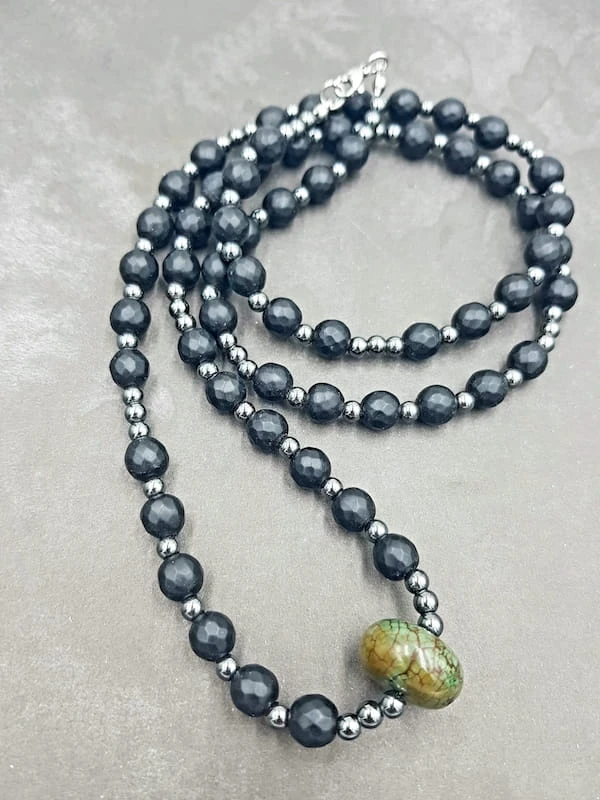 Naszyjnik z lawy wulkanicznej, hematytu i jaspisu