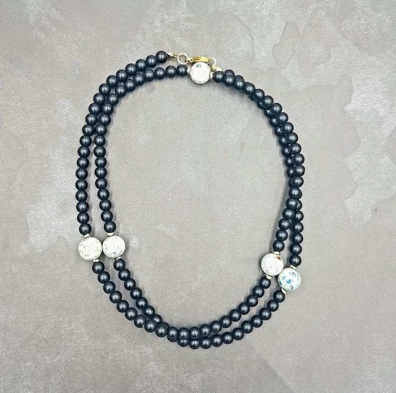 Naszyjnik z lawy wulkanicznej, jaspisu i złotego hematytu