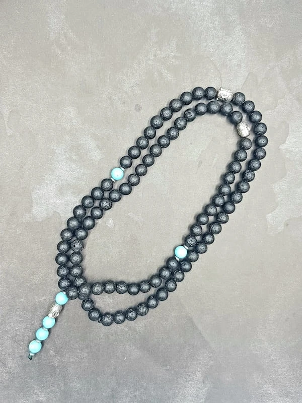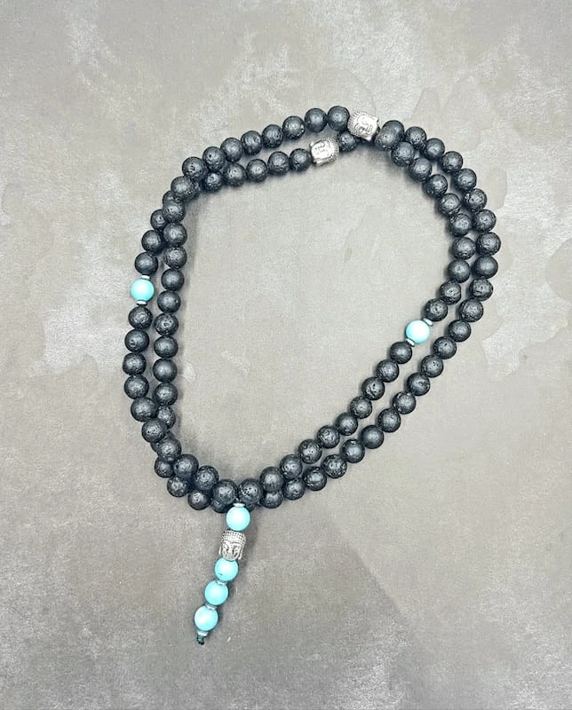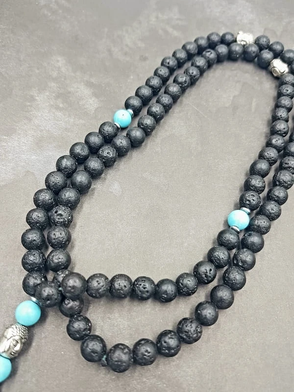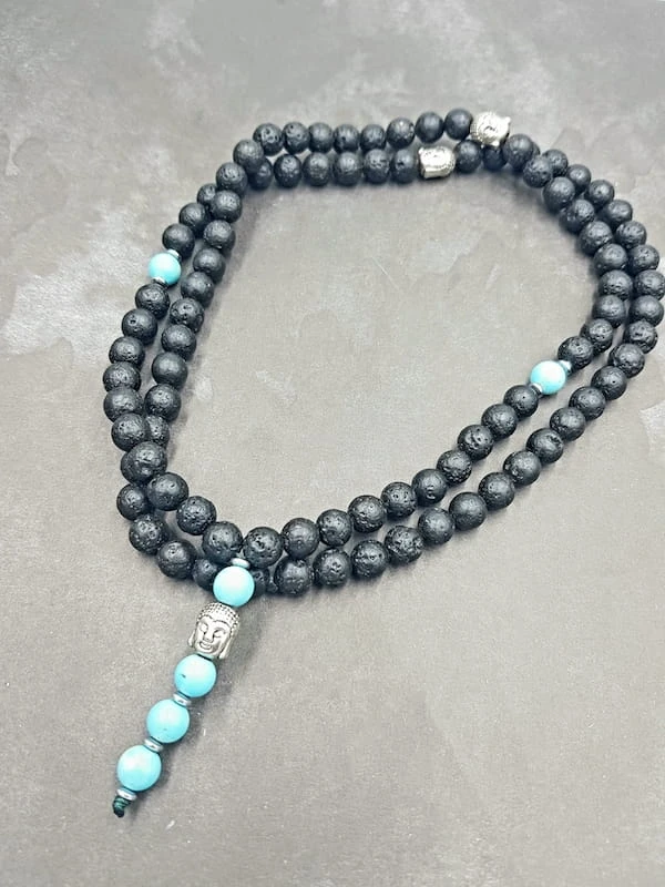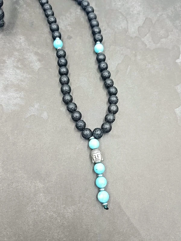 Naszyjnik z lawy wulkanicznej, turkusu i charmsu Budda