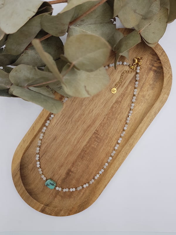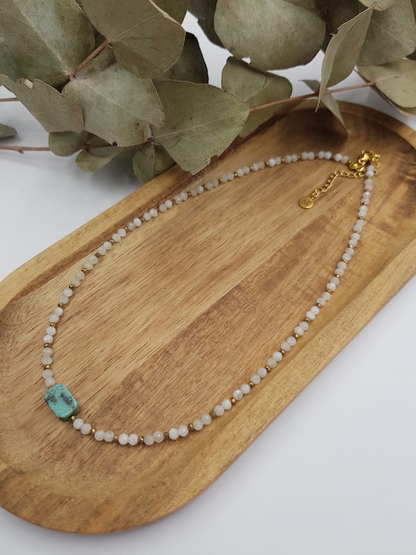 Naszyjnik kamień księżycowy z turkusem afrykańskim